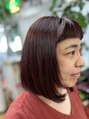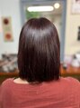 多毛で乾きづらい髪質で内側を見えない範囲でしっかり刈り上げてツーブロックボブに春色にブロッサム系で明るく♪