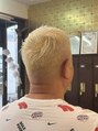 トップを残しフェード風にカットしてジェルワックスにてスタイリング。ブリーチで色を抜きアッシュのトナーをかぶせてます。