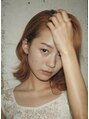 サイドパートでかきあげたハイトーンオレンジベージュ。ブリーチをしなくても、カラーのハイトーンベースがあれば発色します。
