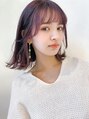 ラベンダーピンクカラーにミルクティーベージュのイヤリングカラーでアクセントを^^!耳にかけたり、巻くとよりデザインが映えます肩につくミディボブも人気です。