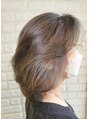 ミディアムラウンドレイヤー。サイドからバックにかけラウンドさせたレイヤースタイル。クリープパーマをかけ、イノアカラーとハイライトの組み合わせで立体的な動きをつくる。ケラスターゼカクテルトリートメント施術し、髪が傷まないように。