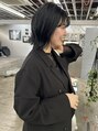 深いオリーブでトーンダウンしてます◎暗めでも透明感が出るのでとても人気です!色落ちもオレンジ味を消しながら落ちてくれます^^伸ばし中のボブをゆるっと巻いても可愛いです♪