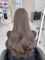 - グレージュ/くすみベージュ/ブリーチ無しダブルカラー/韓国風ヘア レイヤー/暗めカラー/心斎橋/大阪難波