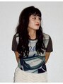 イルミナカラー4ナイトスカイで黒に近いダークカラー。艶もありながら重すぎない上品な暗髪に仕上がります。細かなミックス巻きのカールでロンドンガールな雰囲気にセット。