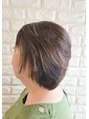 ショートレイヤー。酸性ストレートでナチュラルなストレートにし、イノアカラーとハイライトの組み合わせで白髪ぼかし。