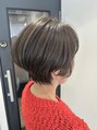 白髪ぼかしハイライトを入れたグレージュカラー。カットは丸みのあるショートボブ
