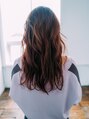 ブラウンカラーのロングヘアにパーマ風の巻きを加えたヘアスタイルになっています。前髪や後ろの髪をコテで巻いて動きをつけることで顔まわりに空間を作り顔周りの印象を明るく華やかに見せるスタイルになっています。【レイヤーカット/ハイライト/パーマ】