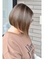 ハイライトカラー/白髪ぼかしハイライト/フォギーブルージュ/前下がりボブ/骨格補正カット