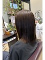 肩下切りっぱなしボブ。縮毛矯正と前頭カラー、そしてトリートメントをしてしっかりケアをしています。
