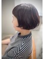 襟足ギリギリまでカットした人気のミニボブ。お顔周りは癖を生かしてニュアンスカット。カラーは赤みブラウンのマニキュア