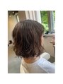 今回はバッサリ15cmほどカットさせていただき、パーマでイメチェンを。ロッドは15ミリ~20ミリを使って、平巻きワンカール。トップは根本巻きmixで、ボリューム感とウエーブ感をプラス◎カラーはアッシュブラウンで透明感を