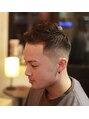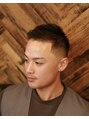 男の短髪スタイル。周りはスキンフェードでトップを立たせやすく長さと量を調整し仕上げはポマードで動きが出るように。顔周りをラインアップしスタイルにメリハリが出るように。