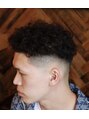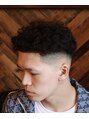 トップに強めのパーマをかけ今流行りのスタイルに。周りはスキンフェードでバリッと刈り上げ、最後に整髪料をつけスタイリングは3分で終わります。パーマが強いためセットがかなり楽になります。