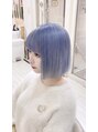 ブリーチオンカラーでスカイブルーにボブでイメチェン☆色落ちが白っぽいシルバーになる水色で色落ちも楽しめる☆