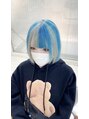 ブリーチオンカラーでベースはシルバーに水色のブロックカラーデザイン☆シルバーと水色が太めのストライプ状になってるデザインが可愛い☆