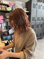 オレンジカラーゆるふわウェーブボブスタイルオン眉バング/ホットペッパービューティー