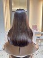 全体はストレートベースで仕上げつつ、毛先にほんのりとカールをつけることで、ナチュラルな動きと柔らかさを演出。また、仕上げにはトリートメントでしっかりとケアを施し、ストレートでもツヤ感のある、なめらかな質感に。指通りの良さとまとまり◎