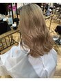 ブリーチを2回して赤みをしっかり除去し、透明感と柔らかさを引き出したミルクティーベージュ♪まろやかな色味が肌を明るく見せ、一気に垢抜けた印象に♪髪の赤みや黄みが気になる方にもおすすめの大人気カラーです!