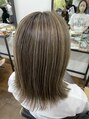 白髪ぼかしハイライト(大人外ハネセミディ)グレージュベースのハイライトで赤み、黄色みなくしてオシャレカラーに毎回ハイライトいれなくてもかわいいカラーになりますよ