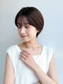 大人ショート丸みマッシュ。頭の丸みが綺麗に見え、襟足はやや短め、丸みのある前髪、女性らしいスタイル。ハイライトを入れると透明感が出て可愛さが増します!白髪ぼかしも可能です。ワックスを揉み込むだけの、簡単スタイリングです。
