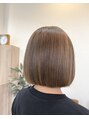 人気のパッツンボブ 内巻きも外ハネも◎ブリーチ1回+ダメージレスレアラカラーで艶のある仕上がりに