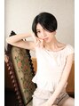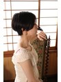 センターパートのハンサムショート。サラッとした質感、縛ったネープは涼しげでスタイリングもしやすいです*
