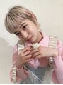 レイヤーボブとホワイトベージュ/ピンクカラーの柔らかい質感が可愛いstyle根元がブラウンになっているので、耳にかけても可愛いです!