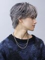 トレンドカラーのシルバーベースローライトブリーチ2回でできます。ラウンドマッシュのシースルーフェザースタイルです。