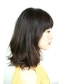 レイヤーを少しいれ、パーマで動きをつけたミディアムスタイルです。毛先と中間をスパイラルで巻いて束が重ならないようにして動きをだしています。