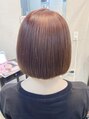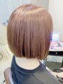 丸みのある前下がりボブ。まとめやすくツヤの出やすいスタイル。簡単スタイリングで忙しい朝も時短できます!カラーは明るめのピンクベージュでイメージもパッと明るくなるスタイルです!