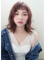 眉上の斜めバング&顔まわりのレイヤーで小顔に◎肌の色が綺麗に見えるピンクブラウンは春にとってもおすすめです。