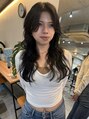 重さをある程度残したレイヤーカットにボリュームを出したウェーブスタイル。前髪にはバタフライカットのようにふわっとしたスタイリングに。カーラーを使うと簡単に前髪スタイリング決まります。パープルブラックでべたすぎない抜けた黒に。