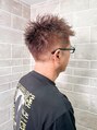 刈り上げショートでソフトツイストパーマ。単調な短髪に表情が出る。