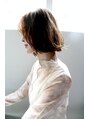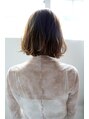 カットは、あご下5cmでやや前下がりのボブに。耳前にフェイスレイヤーとローレイヤーを入れ、細かい毛束や動きを出しやすく調整。