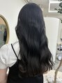 青色で染めることによって暗めカラーだけど透明感のある仕上がりに♪ロングを維持するために指通りが良くなるような毛量調整をさせていただきました!