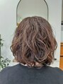 全体的にゆるくウェーブパーマをかけた軽やかなミディアムスタイル。朝は軽くウェットにしてムースやジェルを揉み込むだけの簡単なスタイリング。ショートボブからミディアムに伸ばす途中などにもおすすめ!ふんわり柔らかな印象に!