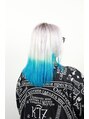 限界までブリーチした髪の毛に、補色を重ねて白っぽくしました!毛先の青が涼しげで、これからの季節にピッタリのスタイルです!