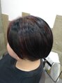 一度ブリーチでメッシュ部分を抜いてから深いボルドーを入れています。
