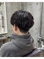 ツイストスパイラル◎クルクルしない縦落ちパーマ。刈り上げることで横からのシルエットも綺麗にスッキリとした印象。無造作な束感のあるマッシュヘア。、