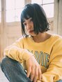 暗めカラーのパッツンボブです。アクセントでイヤリングカラーをしています。耳にかけた時にポイントになるようブリーチをして色を抜いてからオレンジベージュ系カラーを入れています。あまり派手にヘアカラーが出来ない方におすすめ。