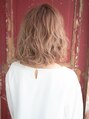 肩下のレングスで切って、ワンレンベースでカット!カラーはダブルカラーになるので、ブリーチをしてから薄いピンクベージュのカラーをのせることで、やわらかいハイトーンカラーになります。スタイリングはコテでランダムにざっくり巻くのがポイント