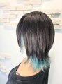 インナーカラーいろいろな色をチャレンジしてきて、入れる色に悩みますね~イヤリングカラーブルーグリーン外ハネミディ。韓国風波巻きミディ。耳掛けスタイル
