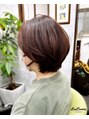 今回のカラーはピンクベージュで軽やかに。昨年ショートにするまでは。ずっとセミロングのお客様です。