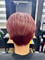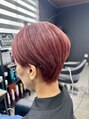 頭の形をきれいに見せる丸みのあるシルエットが特徴なショートスタイル。カラーは艶と透明感を両立したレッド系で、肌色を明るく見せつつ個性も演出。美フォルムを追求した、大人のための上質ショートです。