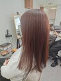 イルミナカラーでトワイライトにブロッサムを足してクリアな春らしい重くならないピンクブラウンにしました。内に入りやすいよう整えて軽くしてお手入れしやすくカット