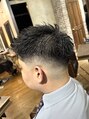 - スキンフェードでカッチリ刈り上げつつトップに遊びを。カッチリとやんわりの融合スタイル。