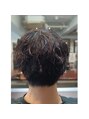 センターパートスパイラルパーマツーブロック刈り上げメンズヘア