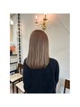 自然なストレートラインと柔らかなベージュカラーが魅力的で、上品かつ透明感のある印象を与えます。カラーリングが明るすぎず落ち着いたトーンなので、大人っぽい印象を求める方にも最適です。