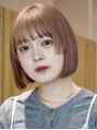 切りっぱなしボブ ベージュ 顔周りレイヤー ピンクベージュ