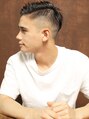 アウトラインを短くした七三ショートスタイル。パートラインを目の外側ぐらいで決めて、ピッチリ七三に分け、トップをやや長めに残す事で毛流れができやすくしています。